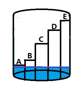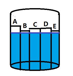 假如做一件事情需要 A、B、C、D、E 五个素质。小明的五个素质比较平均,于是,TA的“木桶”是这样的: